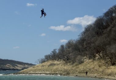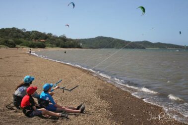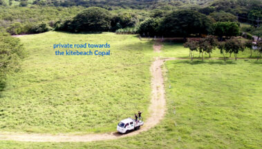 Our goal is to let you make an unforgettable kite vacation, so we take care of you all day long. After a full energetic Breakfast (between 7am and 9am), the meeting point is outside the reception. We leave all together toward the kitebeach at 9am. Guests can put the kite gear (from the free storage boxes) on the shuttle Pick up and eventually walk to the beach later. Our private entrance take you directly to the launching area where is based our school. We are 4 instructors, at least 1 will stay during the day on the beach with our guests, kiting together, doing lessons, renting gear and helping around. We are in the best spot of the beach, for the benefit and safety of our clients. This is the more upwind location, at the really end of Playa Copal, that means: side shore wind, more flat water, the closer to the reef you can get and a lot of space for launching and landing the kites even with high tide; the rest of Copal beach have almost no space in high tide and unfortunately can´t offer that.